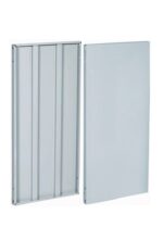 CARACTERISTICAS GENERALES: • Fabricado en lámina calibre 26 rolado en frío. • Perforado para ensamblar a postes. • Perforado para recibir escuadras a las cuatro esquinas. • Refuerzo tipo omega. • Terminado en pintura con aplicación electrostática en fórmula híbrido horneado a 190°.